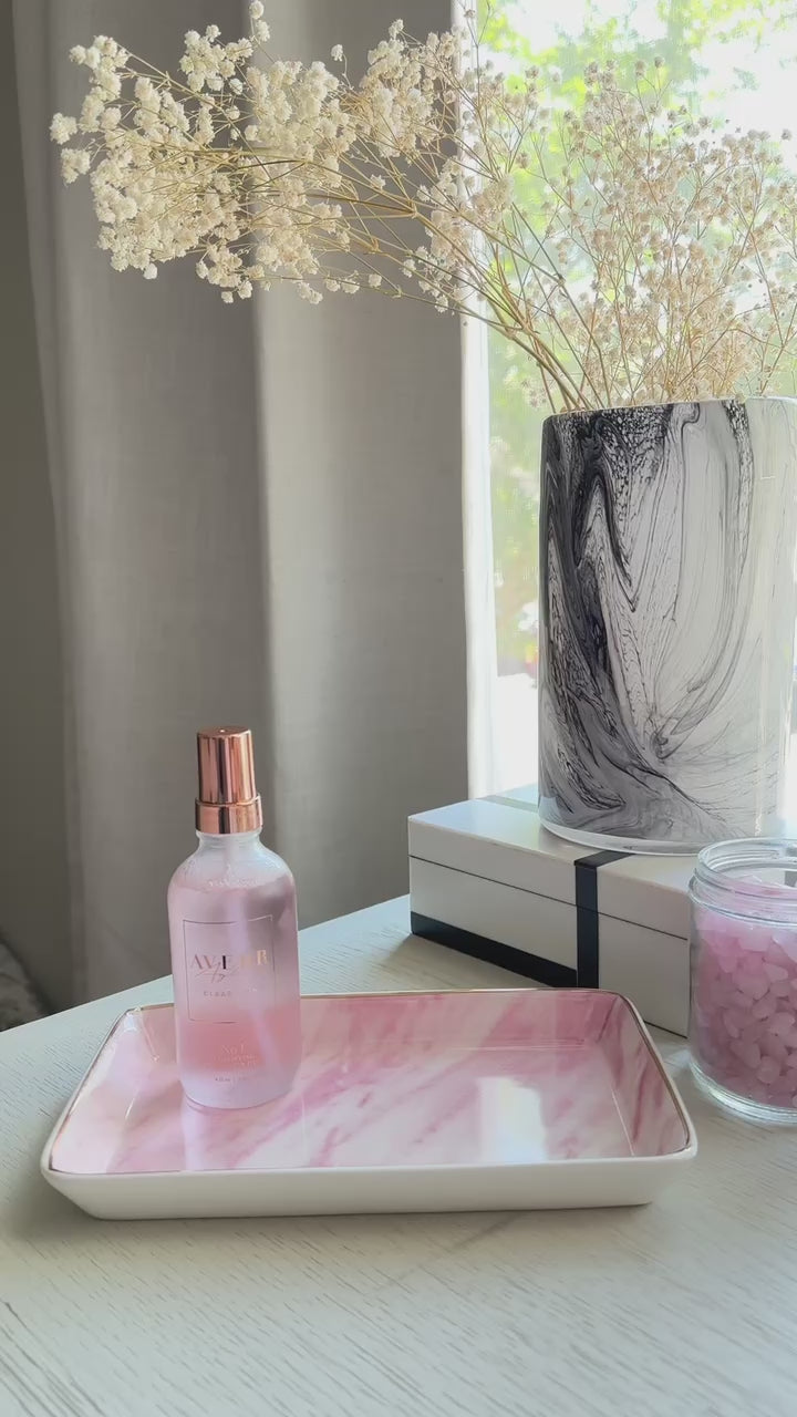 A gentle floral water that calms redness and provides a refreshing burst of hydration, balancing skin for a soft, dewy feel.